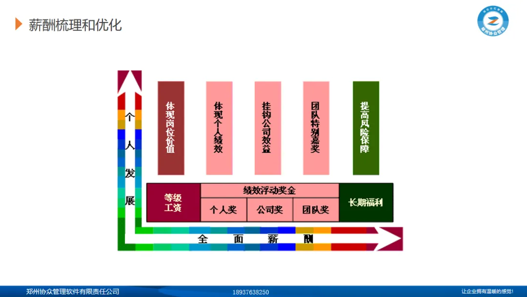 通过建立基于平衡计分卡的浮动薪酬体系,让全体员工参与分享企业创造的价值,优化激励约束机制,实现“个人×团队”的激励组合和“短期×长期”的利益协同,促进企业和谐健康发展。