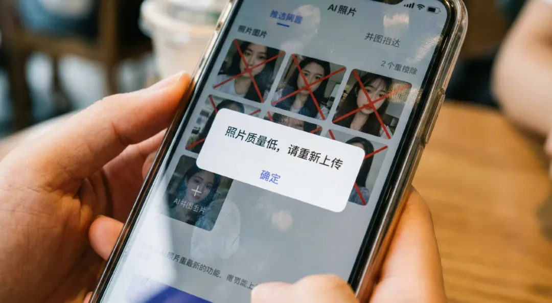 上传。等待。系统提示:“照片质量低,请重新上传。”