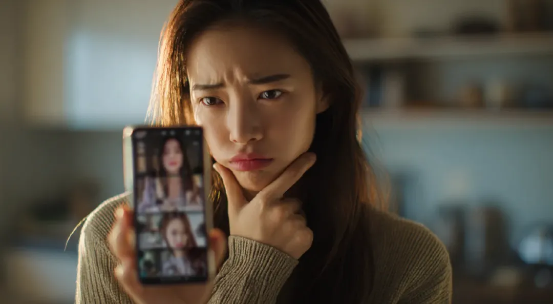 自拍很多,但大部分是仰角45度、嘟嘴、比耶。AI要求正脸、无表情、光线均匀。