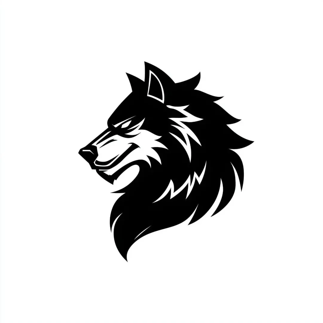 a black and white vector wolf logo, gym logo, muscular wolf, trojan wolf logo, adventure time style
