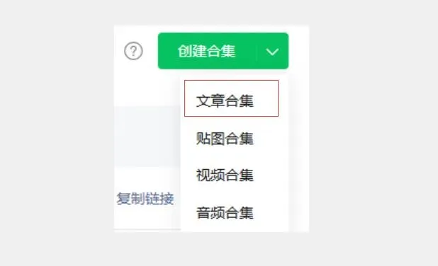 3. 点开【创建合集】后,有【文章合集】【题图合集】【视频合集】【音频合集】,根据自己的需求选择,我选择的是【文章合集】