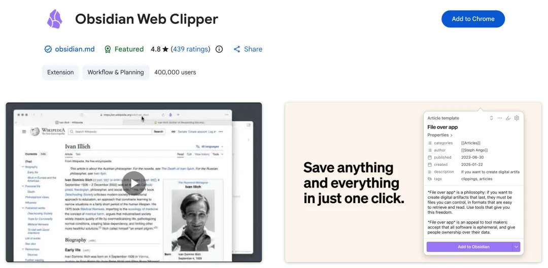 其实这款插件是由 Obsidian 的联合创始人 Steph Ango 编写的,当时我自己的想法是这款工具后续肯定是要集成到他们自己的 Web Clipper 产品中去。