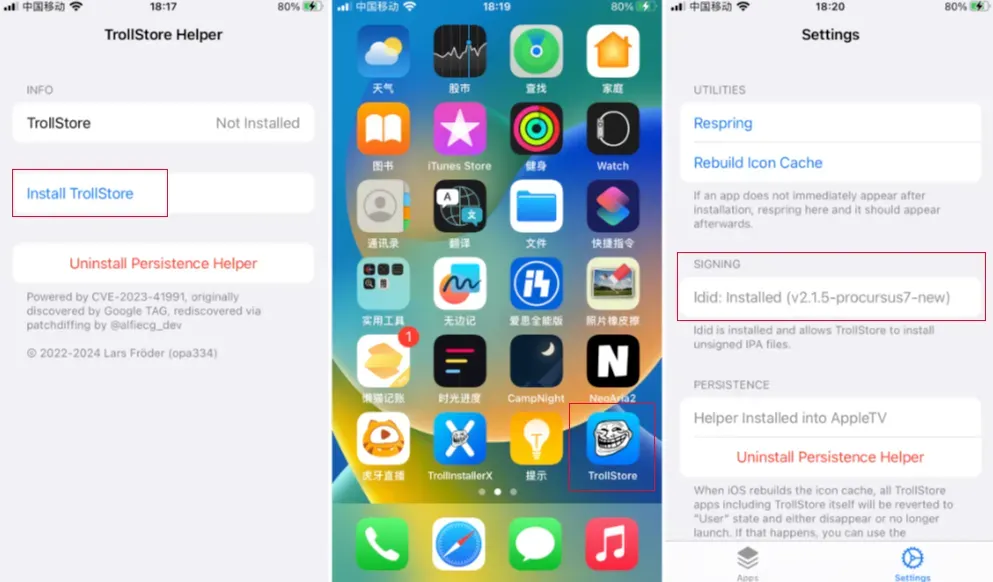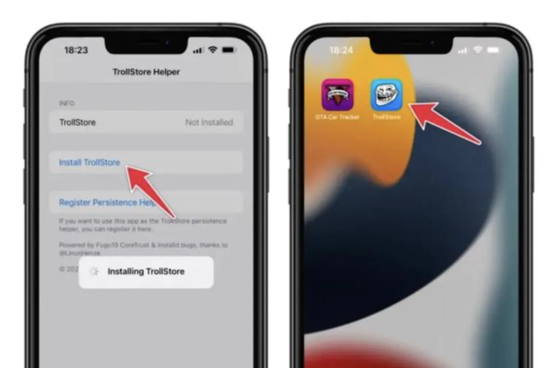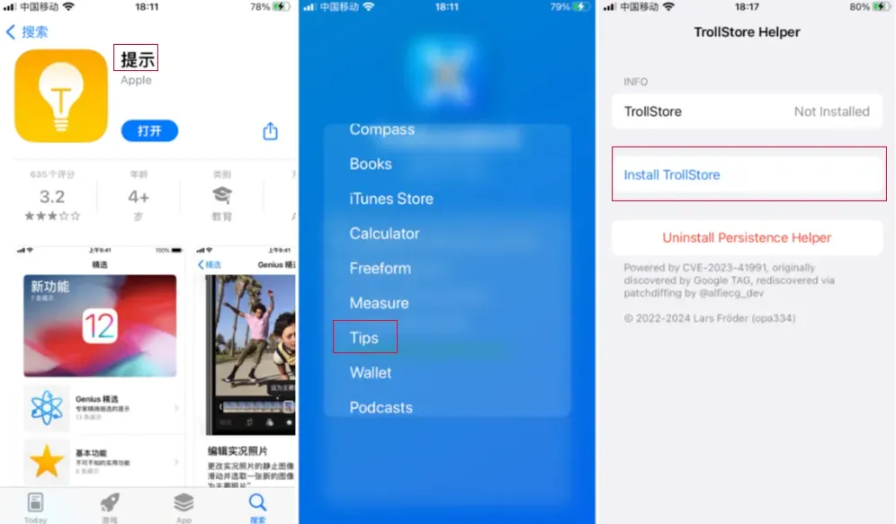 TrollRestore将用TrollHelper二进制文件替换Tips等来安装TrollStore。