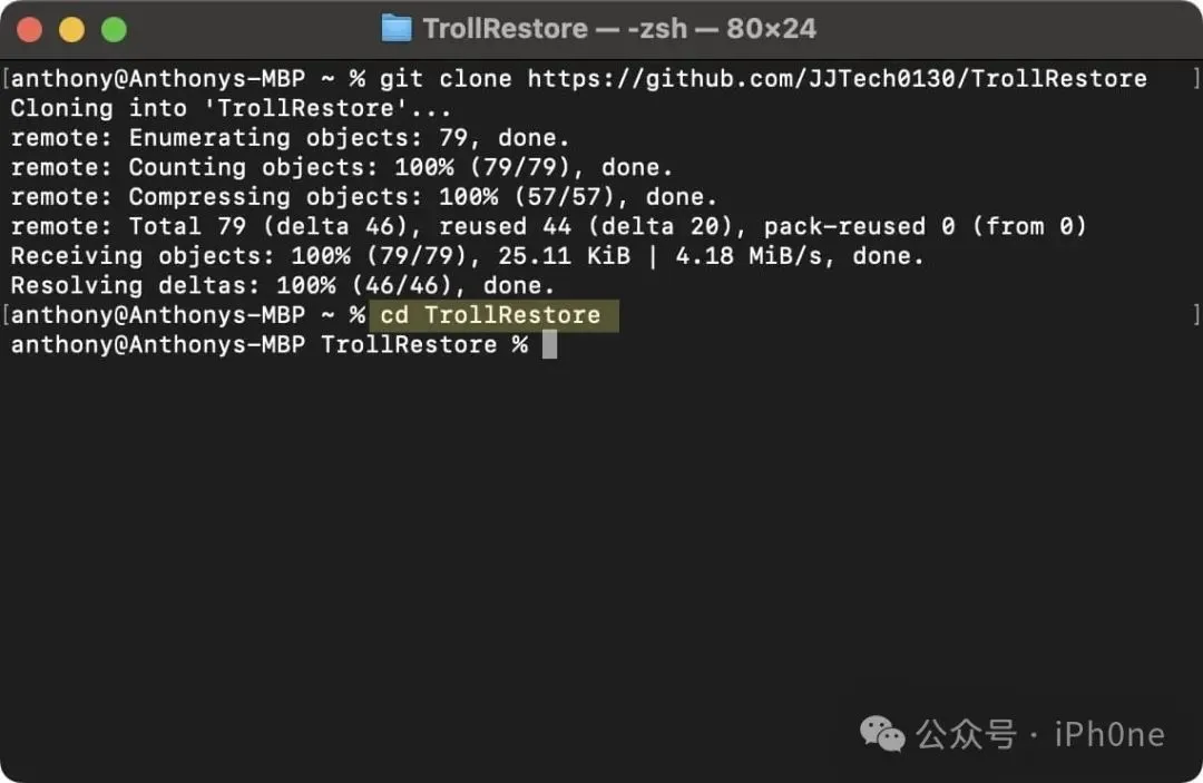注意:此命令将TrollRestore存储库克隆到您的系统文件夹。