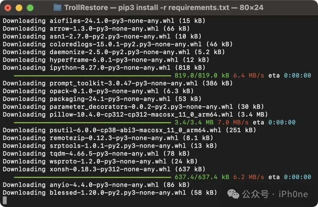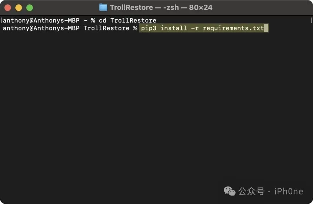 注意:此命令安装安装TrollRestore所需的要求。