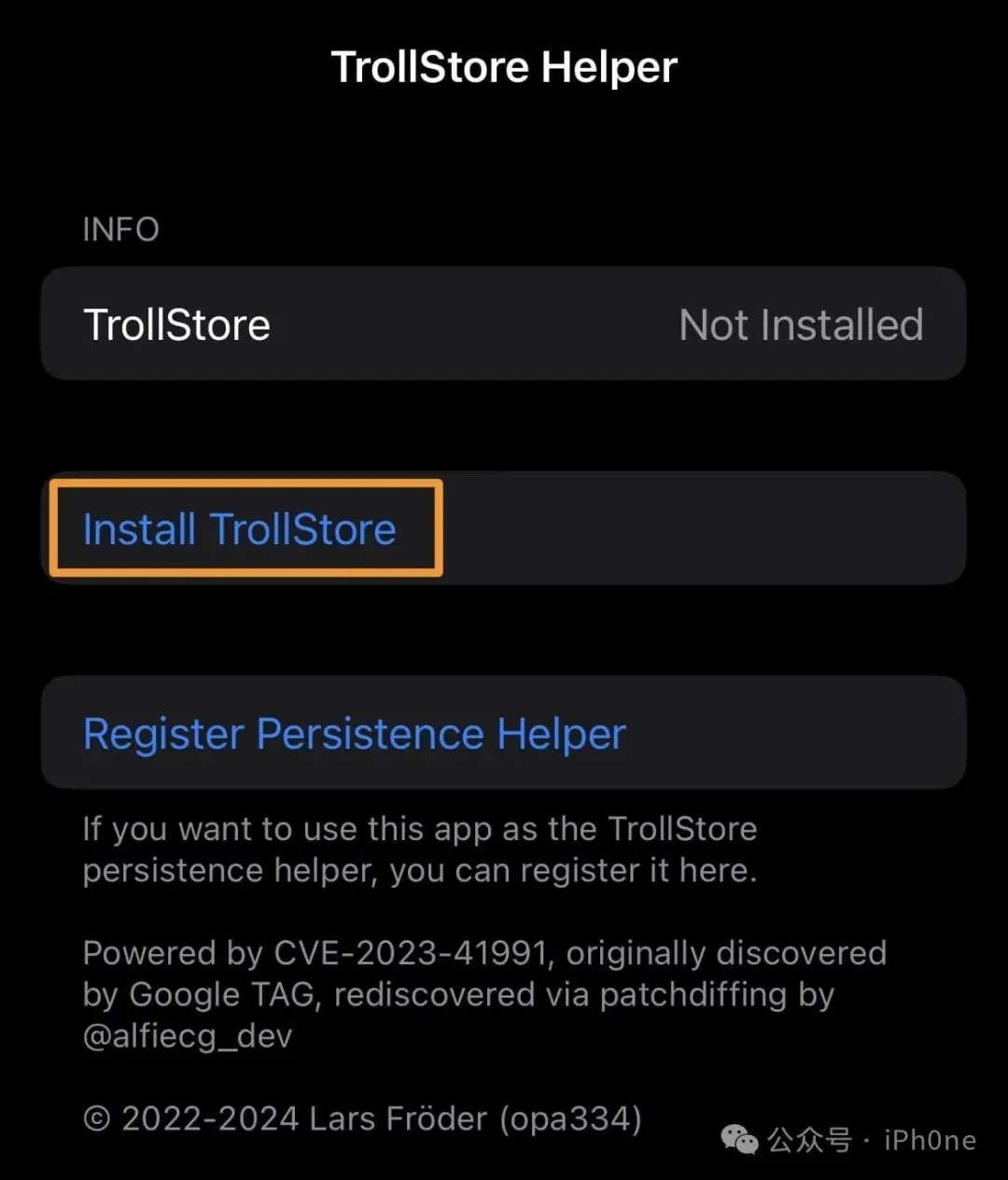 支持iOS&iPadOS 17.0的TrollStore安装方法。