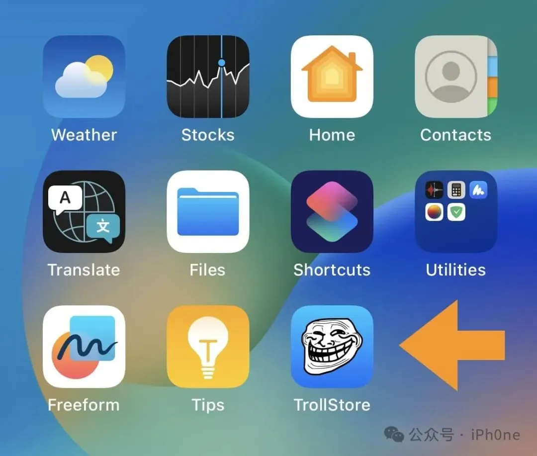 14)从主屏幕启动TrollStore应用程序: