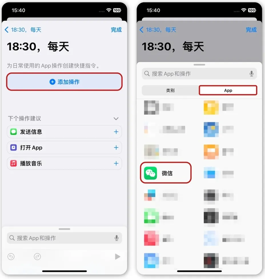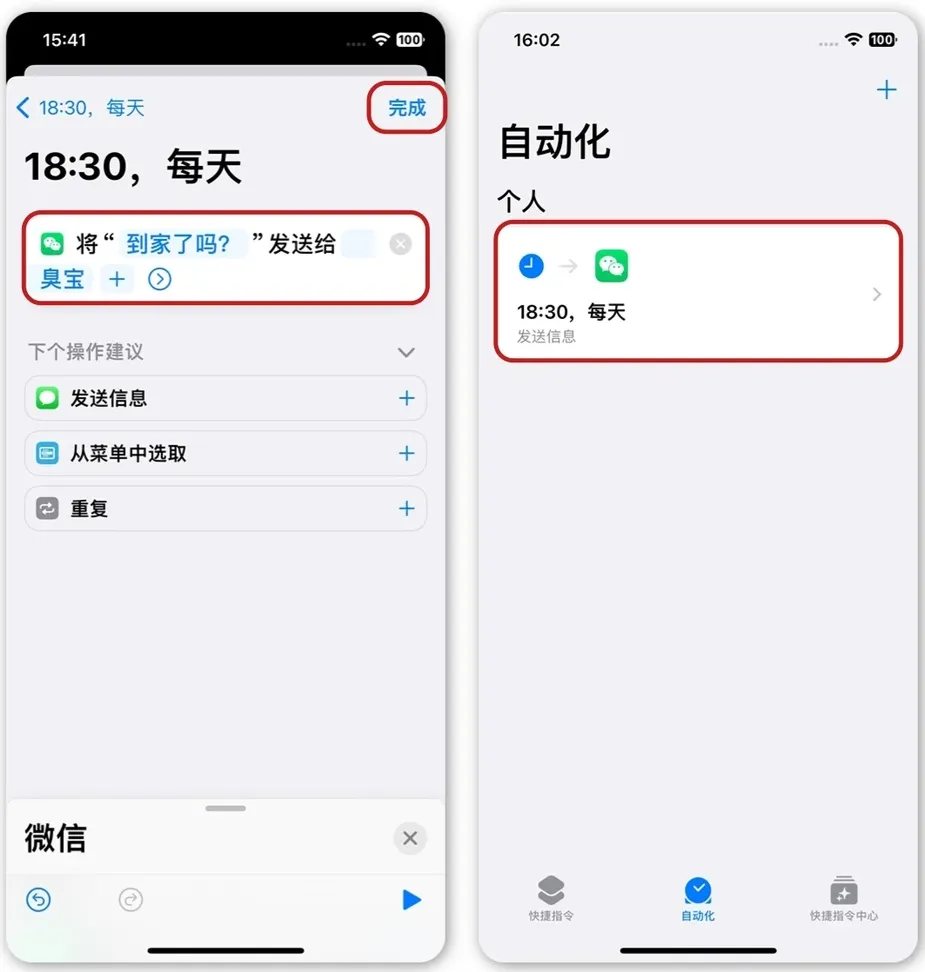 创建个人自动化的系统 选择一个特定的时间段 添加“微信发送信息”动作