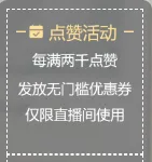 直播间每满两千点赞,给大家发放限量优惠券哦~