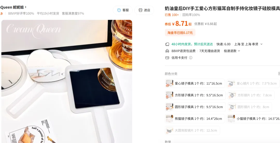 88元送一个镜面蝴蝶结,蝴蝶结单独购买18元