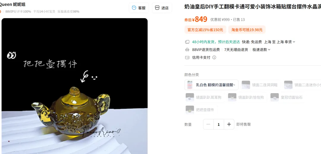 恭喜咱们店铺荣获“手工滴胶店铺榜·TOP1”!~