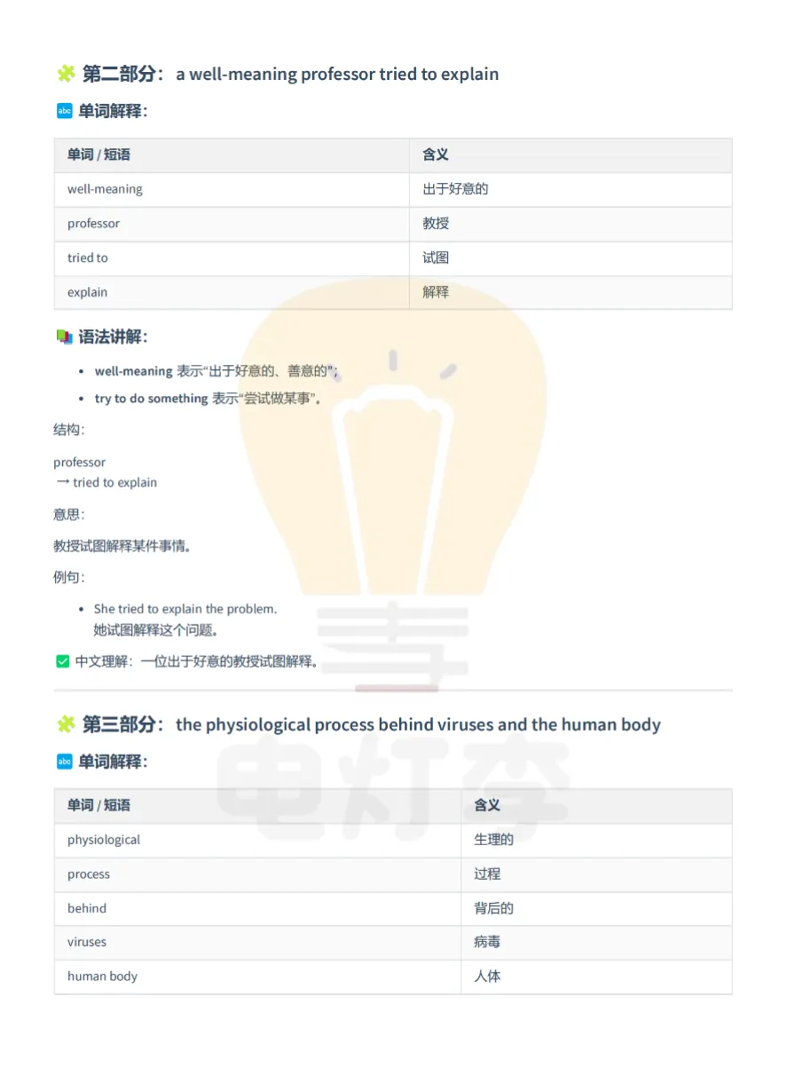 physiological process 表示“生理过程”; behind 在这里表示“背后的机制或原理”; viruses and the human body 表示“病毒与人体”。
