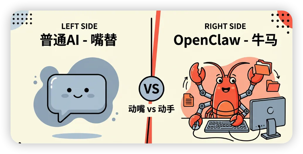 这么说吧,普通对话式AI像是一个特别能聊的同事,什么问题都很懂,但具体干活还得你自己来。OpenClaw则像是给你雇了个实习生,你交代个事儿,给了工作室的钥匙,他直接替你干活。