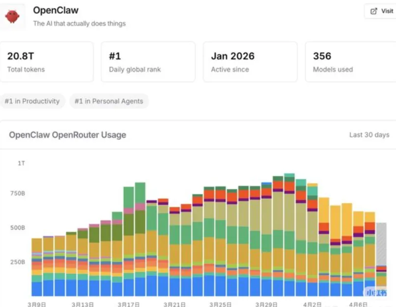 从 OpenRouter 的使用数据来看,OpenClaw 目前仍是体量最大的 Agent 框架,但其调用量已从 3 月底的峰值开始回落。叠加 Anthropic 收紧第三方调用渠道带来的影响,不少开发者开始重新评估对单一框架过度依赖的风险,Agent 生态正步入全新的开放竞争阶段。