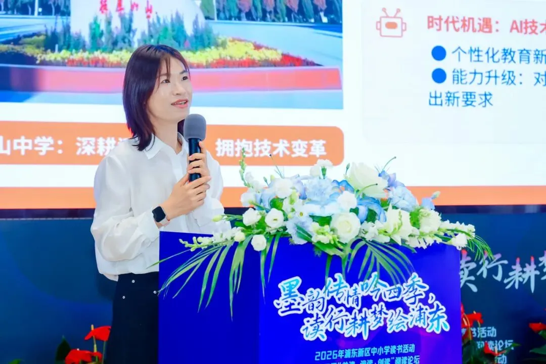 上海市浦东教育发展研究院教育科研指导部原主任、科研员王丽琴提出,教师的高品质阅读是AI无法替代的一道防线。AI可以生成教案,却无法赋予教师独特的精神气质与价值判断。她倡导“良师领读、共读理论”,以此守住教育初心。上海市杨浦区打虎山路第一小学副校长苏旖认为,教师的阅读应“精专与广博相结合”。精专,是为了在专业领域深耕细作、筑牢教学根基;广博,是为了广泛涉猎、滋养心灵,让自己成为一个有温度的教育者。华东师大临港初中语文教师胡文雪分享了自己的“靶向阅读”经验。她结合具体案例,讲述了如何带着问题去阅读,并将书中的理念转化为与学生的情感联结——一场关于史铁生的共读,让她与学生的心靠得更近。临港科技教育智慧图书馆执行馆长范继祖表示,阅读能让人变得更加柔软与宽容。他提醒教师,在拥抱AI的同时,要始终坚守育人的主体地位。同时,现场一位教师也分享了学校每周开展教师读书活动的经验,进一步印证了阅读对教师专业成长和育人能力提升的重要意义。