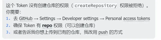 我当时配了飞书接入,然后让它帮我连 GitHub 仓库、创建项目、再上传项目。一整套流程跑下来,挺顺的。