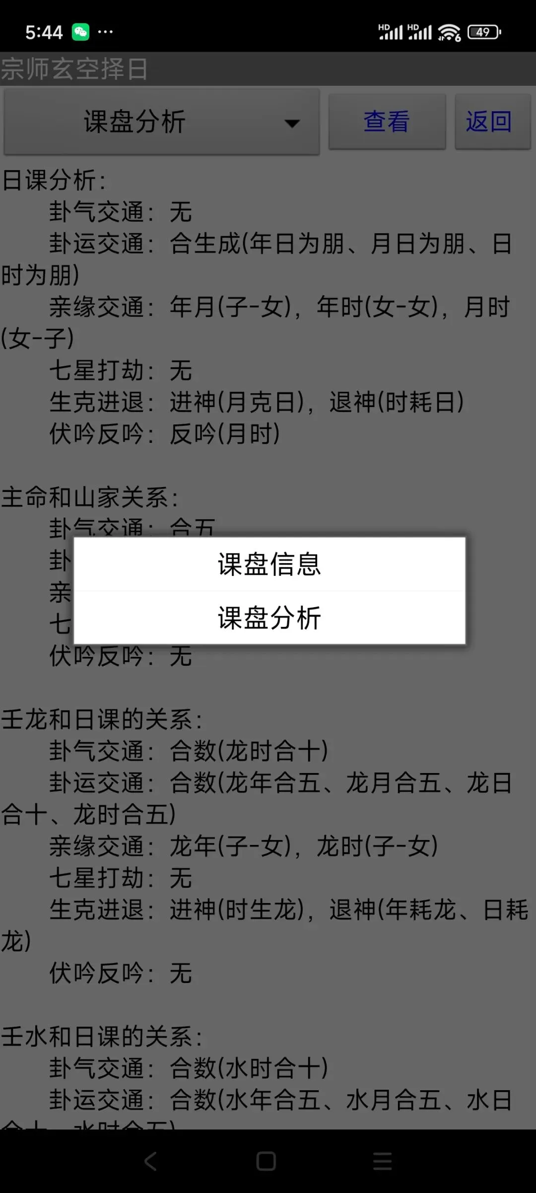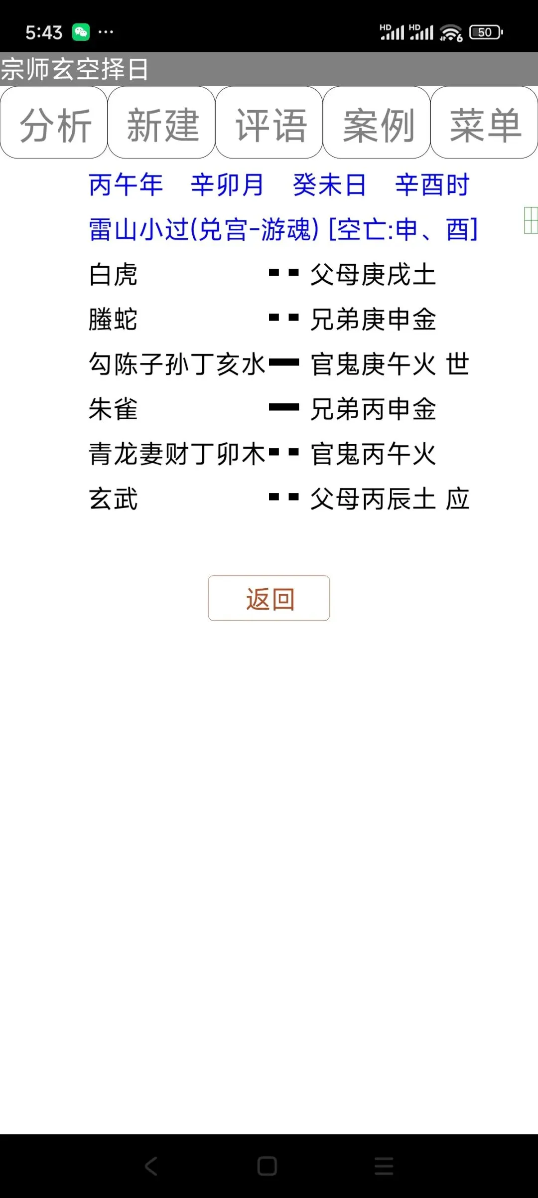3:点击“分析”切换到分析断语窗口后,再点击“盘式”,可以切换回课盘彩色盘。