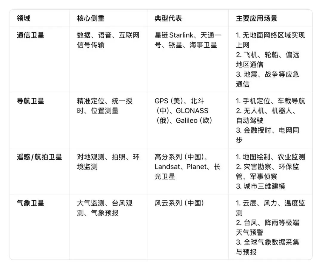 补充知识:卫星四大核心领域(看懂就懂为什么不行)