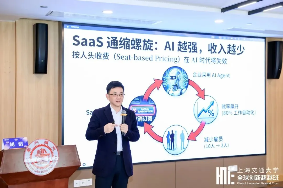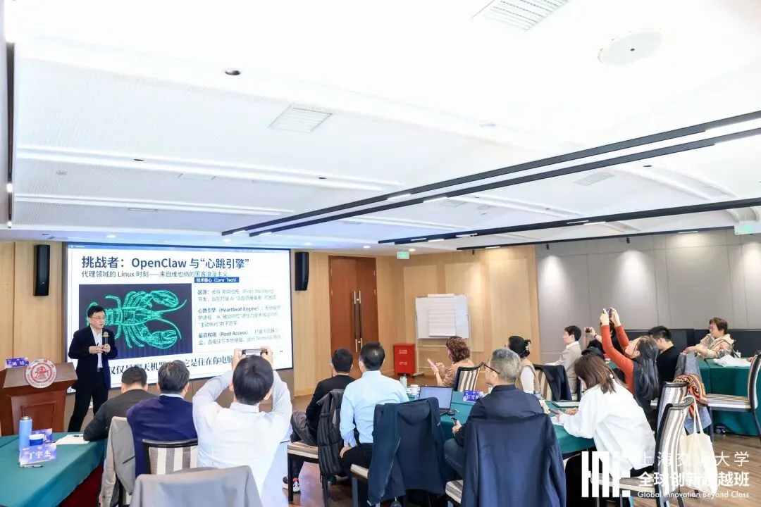 课程开篇,胡洁院长以爆火的AI智能体“OpenClaw(小龙虾)”破题,指出其颠覆性并非源于技术本身,而是打通了“需求-执行”的完整闭环,实现24小时自主执行、技能自补、机器间交易,落地“执行即服务(EaaS)”新范式。这场代理革命,直接宣告了传统SaaS时代的落幕。按人头收费的模式陷入AI通缩螺旋,腾讯则依托海量用户,以免费策略布局龙虾生态、抢占AI入口,让“人找应用”彻底转变为“需求交予数字管家”。