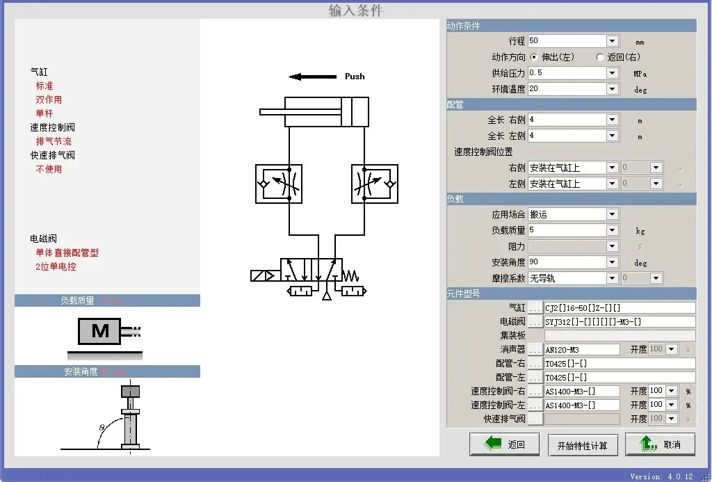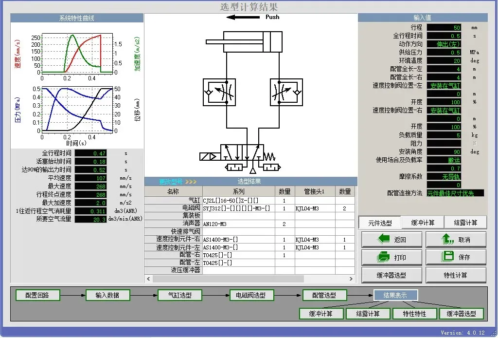 该软件提供详细的气动元件选型结果,包括尺寸、安装方式、压力、流量等参数,方便用户进行优化和调整。