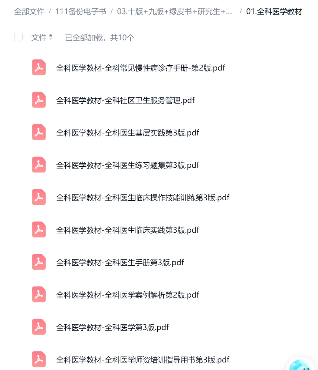 资源免费领取方式 通过网盘分享的文件:01.全科医学教材