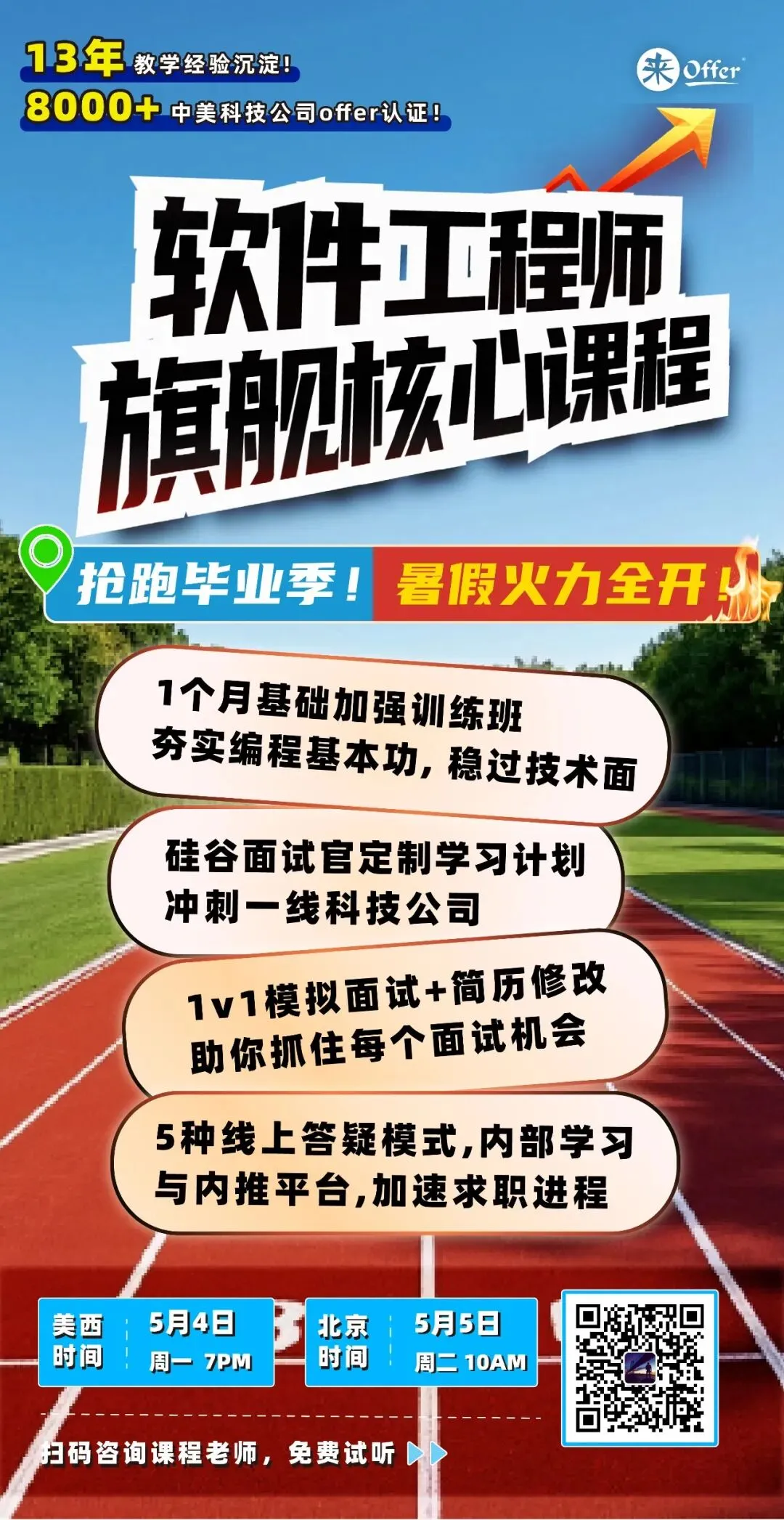 来Offer的课程采取直播互动授课,任课老师都有在谷歌、Meta等一线公司做面试官的经验!