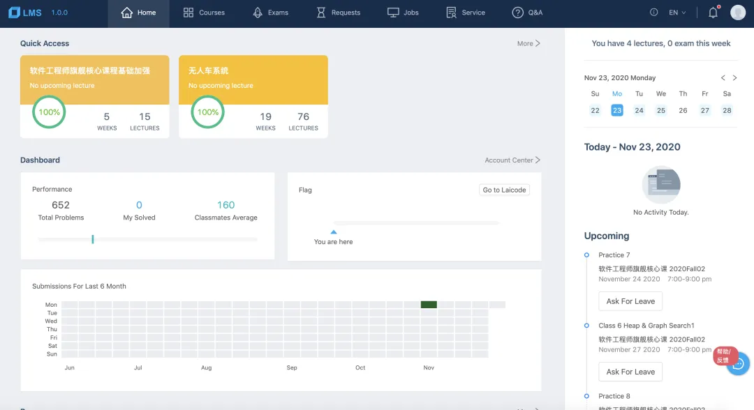 由来Offer独家研发的LMS课程系统,将统计每一位学员的综合出勤率、作业情况和考试情况。