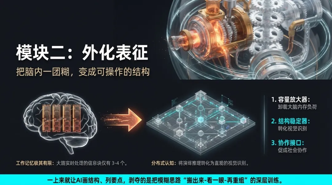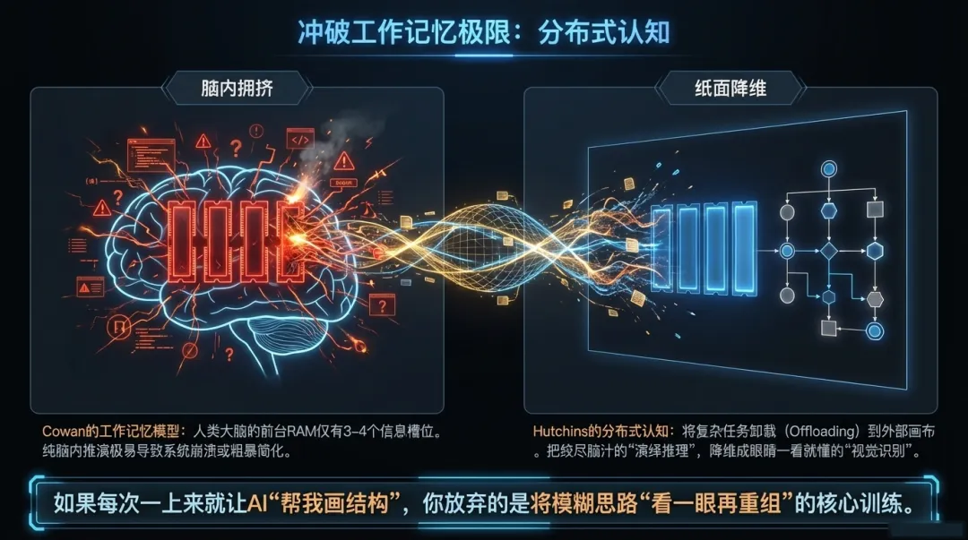 外化表征(External Representation)——认知加工的车间。人类大脑工作记忆容量有限,复杂认知必须借助外部符号系统来突破这个上限。