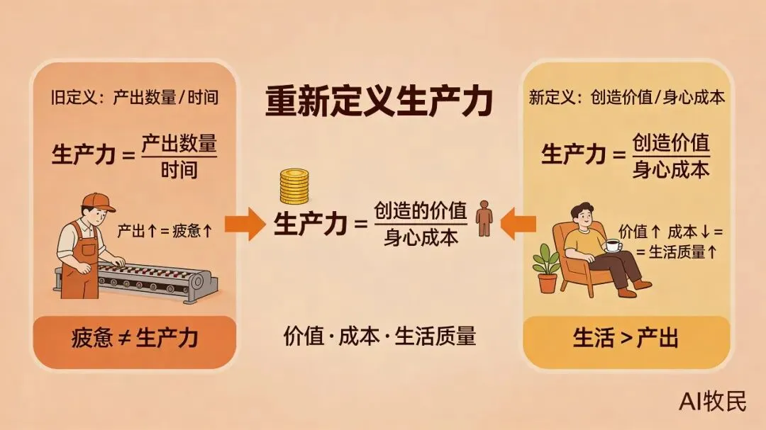 真正的高生产力,应该是:用更少的身心消耗,创造更大的价值,从而腾出更多时间享受生活。