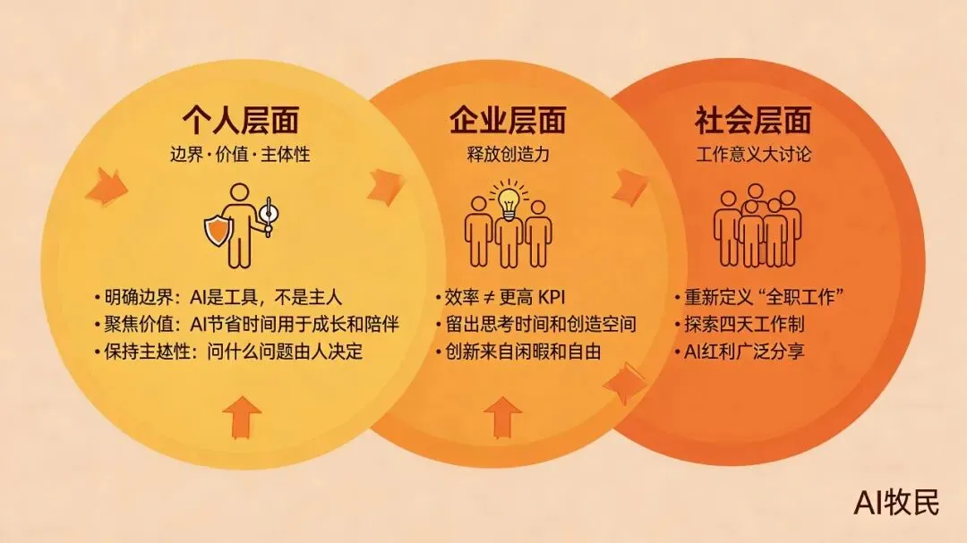 - • 聚焦价值:把 AI 节省下来的时间,用于深度思考、学习成长、陪伴家人,而不是接更多任务