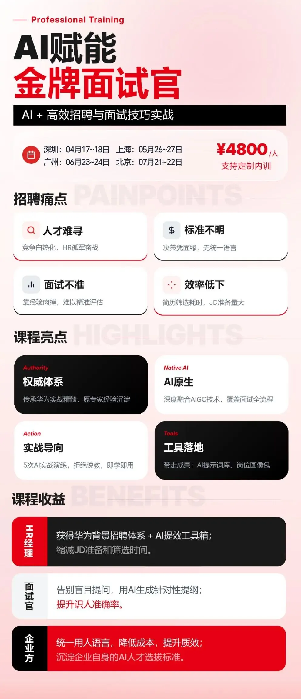 我们联合专业讲师,打造了【AI赋能金牌面试官:AI+高效招聘与面试技巧实战】线下课。