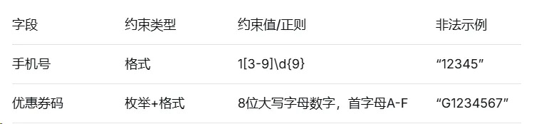 - 数值边界:金额最小值/最大值/步长/临界点(如满减门槛前后)