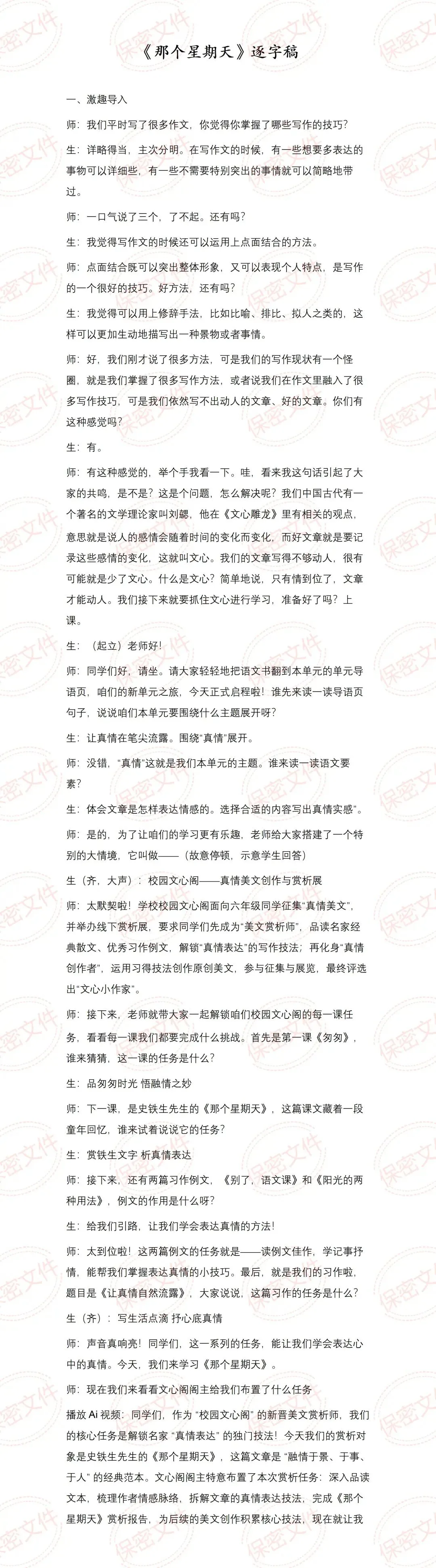 【AI赋能公开课】六年级下册《那个星期天》第二课时公开课课课件、教案、逐字稿、学习单获取本期资源请拉至文末可发电子档,内容可修改可发电子档,内容可修改可发电子档,内容可修改获取本期资源请拉至文末获取本期资源请拉至文末展示部分内容,获取本期资源请拉至文末仅展示部分内容,获取本期资源请拉至文末部分页面截图——END——长按识别下方【二维码】添加好友获取资源