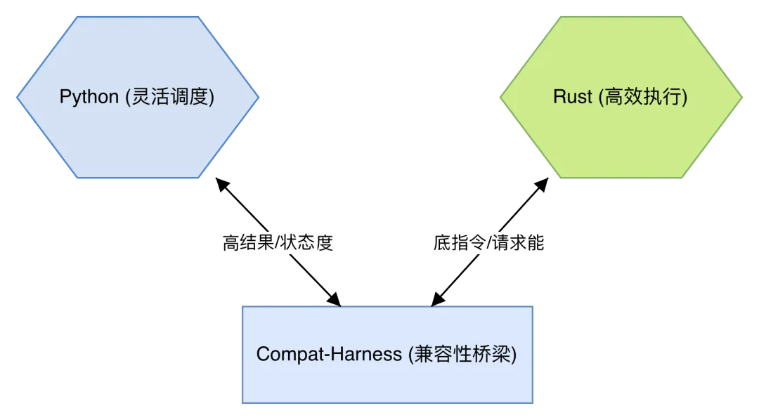 Python 负责智慧的编排和调度,Rust 则提供强大的执行力。这种“双核驱动”的架构,让 Claw-Code 既具备了极强的灵活性,又兼顾了底层工具访问的性能。
