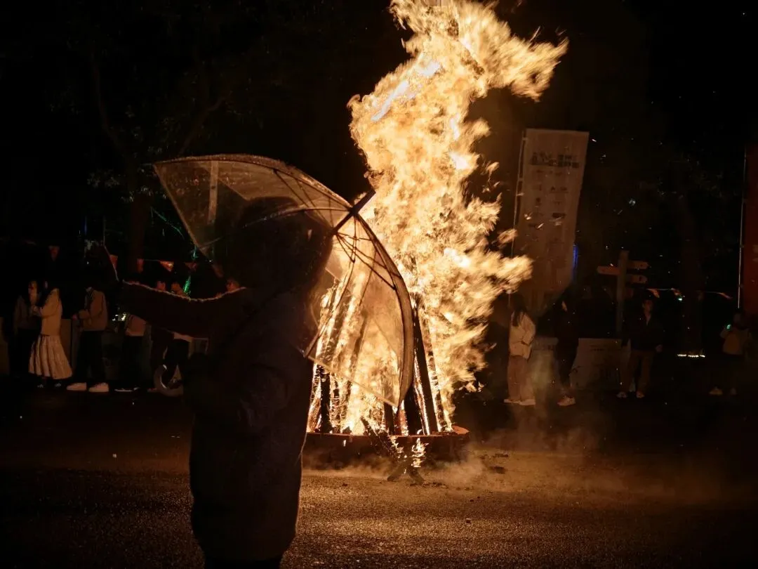 篝火晚会,火焰和人影