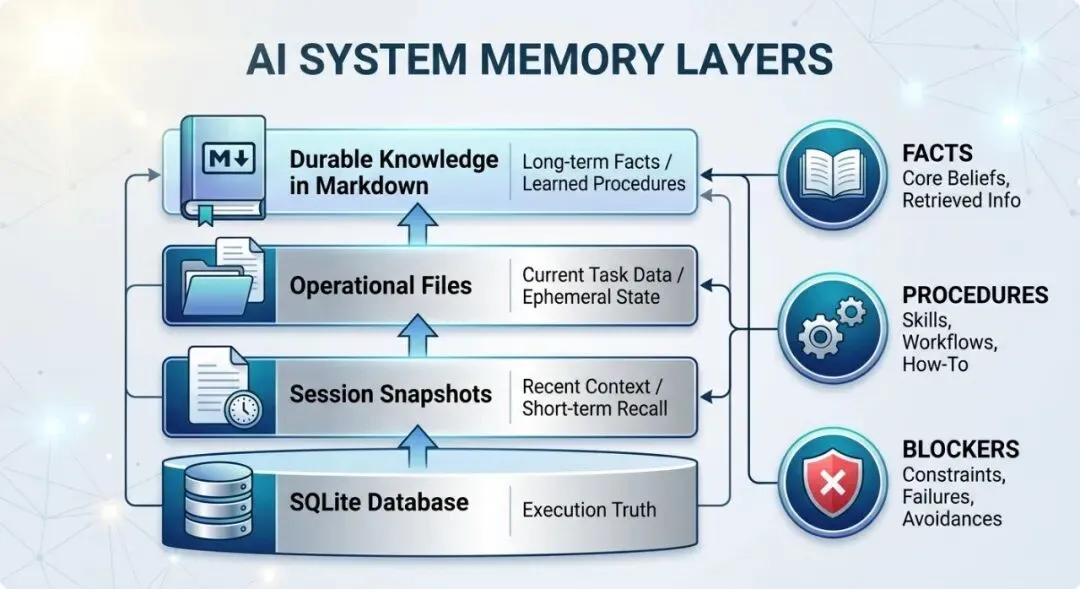 Holaboss对"内存"的管理细致到令人发指。它把记忆分了4层: