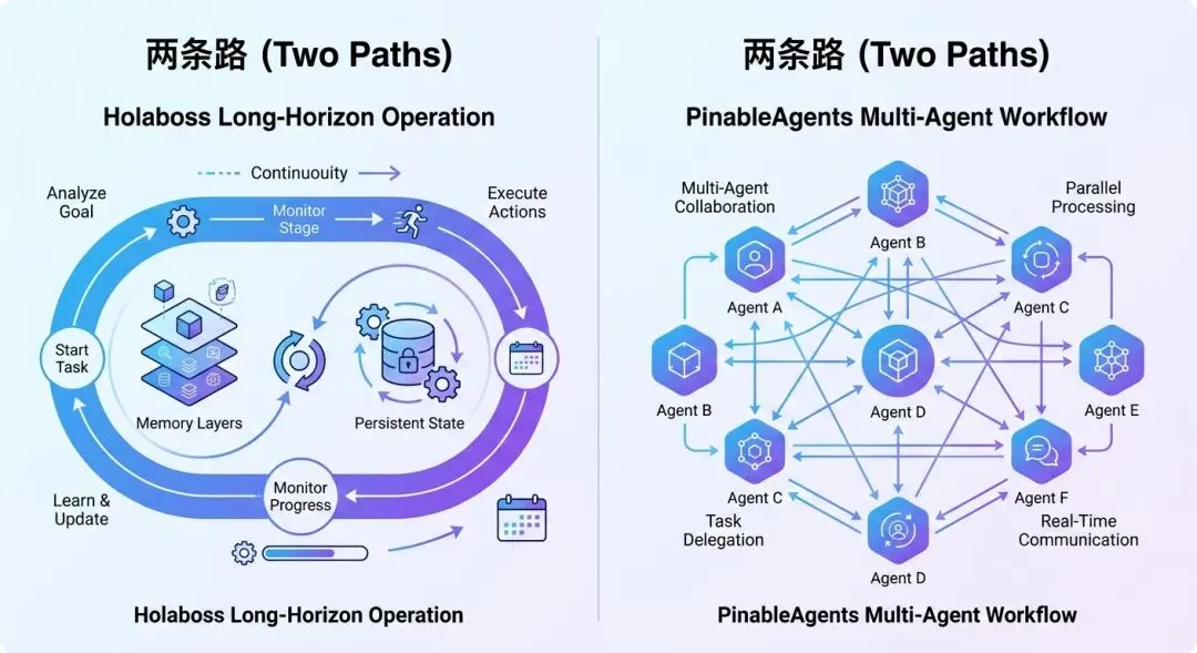 重点不是选哪个框架,而是理解它们各自解决的问题。Holaboss问的是"AI怎样长期运行不失控",PinableAgents问的是"多个AI怎样协作完成复杂工程"。问对问题,选择自然就清楚了。