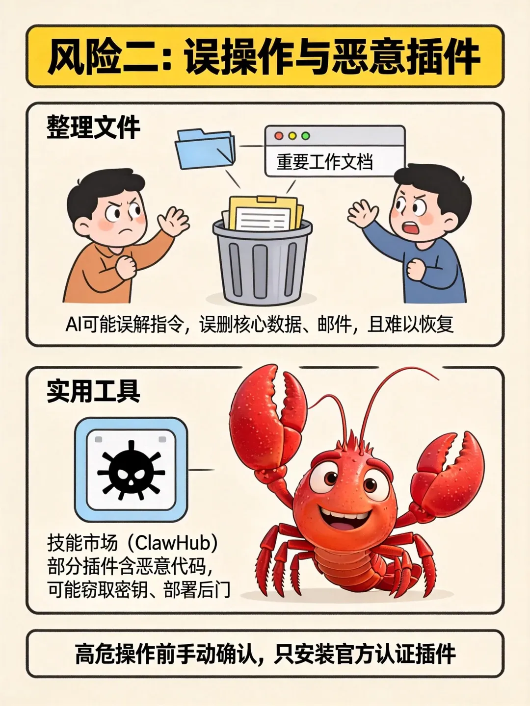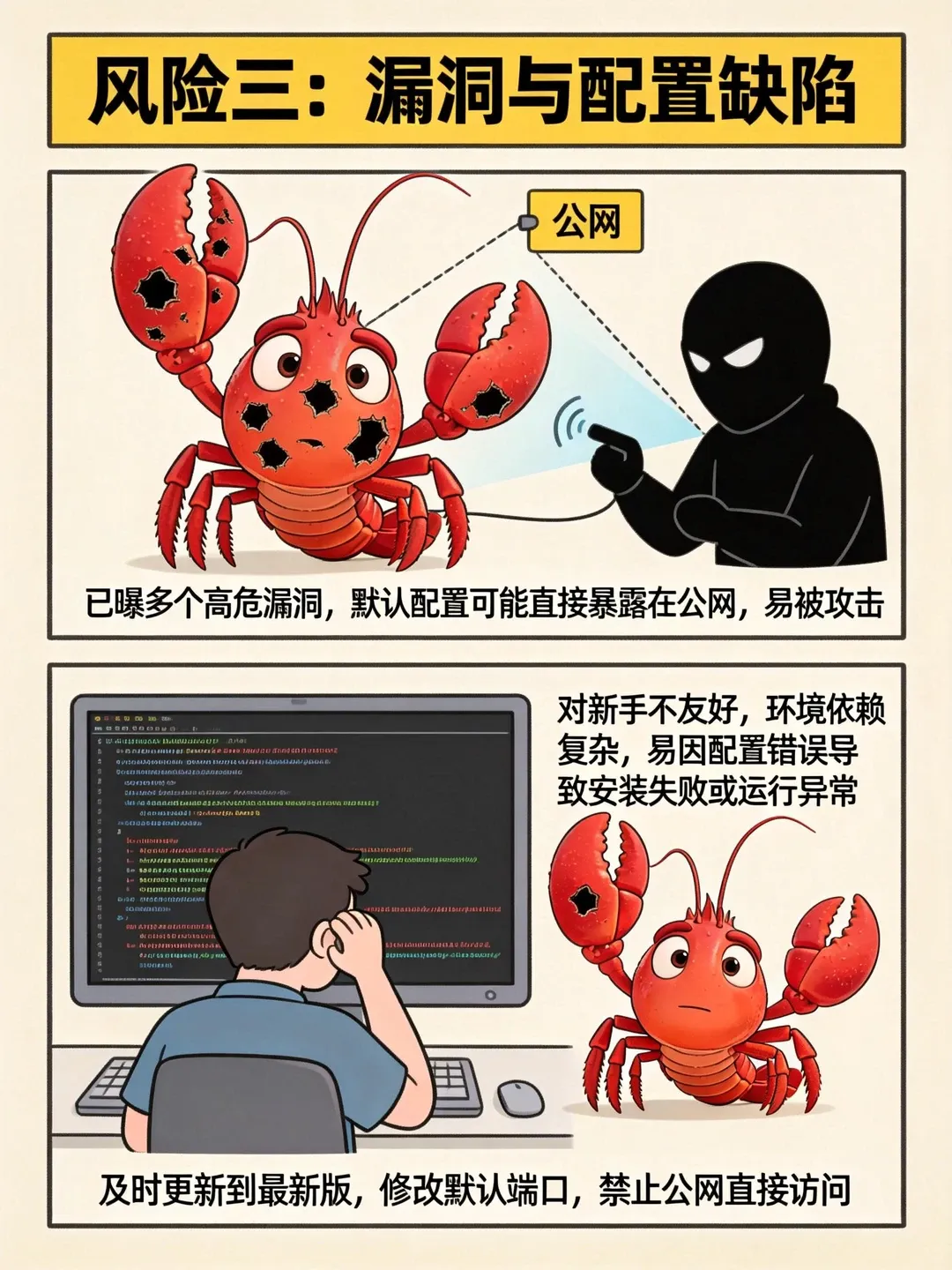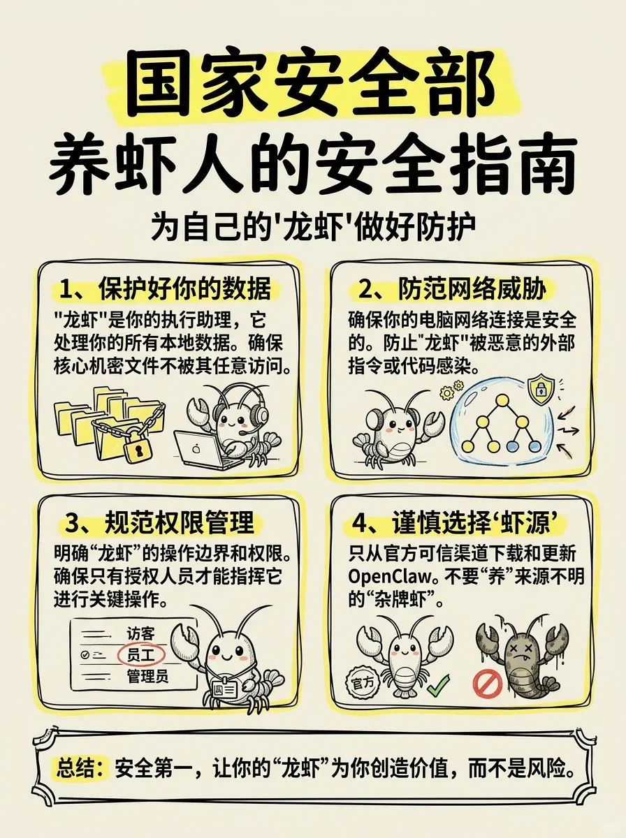 部署要求:使用官方最新稳定版本,从官方渠道下载,开启自动更新提醒。严格控制互联网暴露面,避免将AI智能体实例暴露到公网。初期使用虚拟机或沙箱运行,避免在生产环境直接部署。