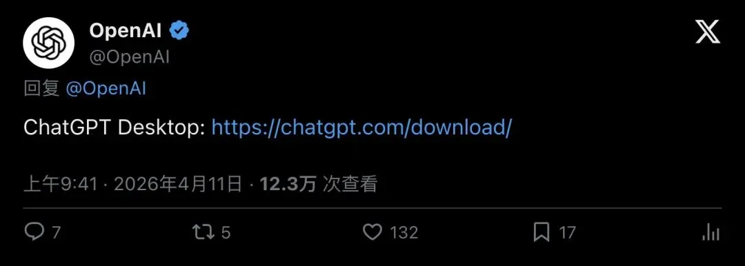 ▲ OpenAI 给出的 ChatGPT Desktop 官方下载入口。