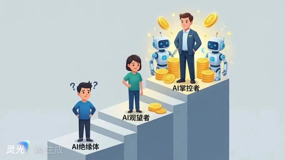 第一种人,AI 绝缘体。他们抗拒 AI,觉得 AI 离自己很远,依然用传统的方式工作和生活。他们不知道,当身边的人都在用 AI 提升效率的时候,原地踏步,就等于被淘汰。