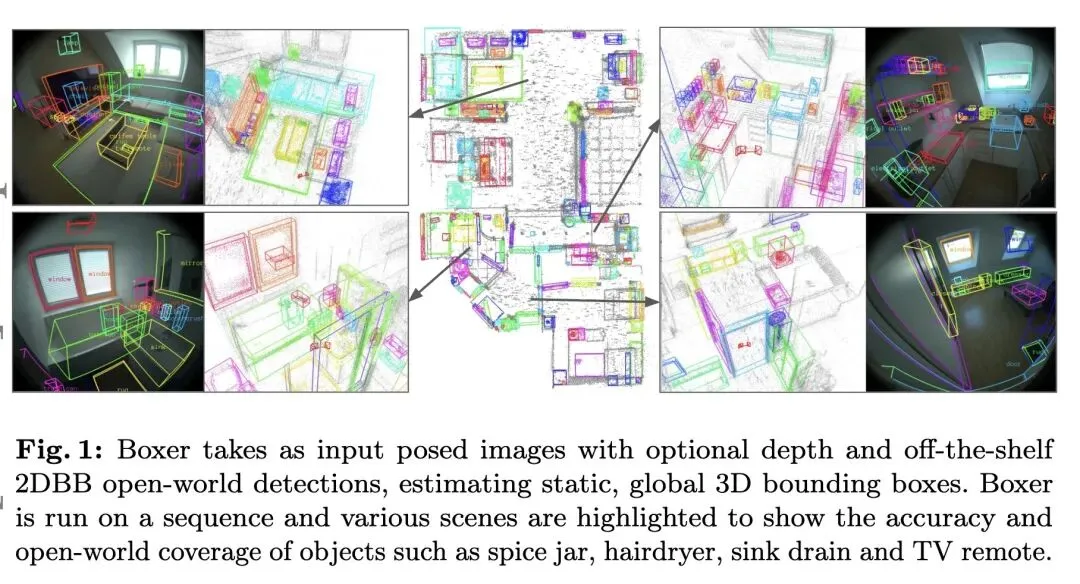 动态物体处理能力缺失:模型和融合系统强依赖“静态世界”假设,无法处理正在移动的物体(如人手持的物品)。 非长方体物体的局限性:对于电线、植物藤蔓等高度非结构化、不适合用 3DBB 表达的物体,检测效果不佳。 强依赖上游组件:如果上游的 2D 开放世界检测器漏检或误检,Boxer 无法纠正;同时,系统必须依赖外部提供的准确相机位姿(Pose)和重力方向输入。