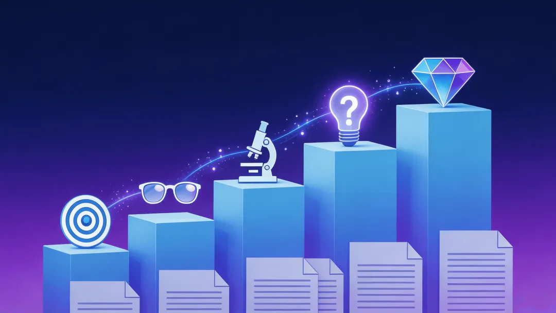 第一条路:从个人经历中挖掘。 把你和导师的聊天记录、学术微信群的讨论、个人读书笔记"投喂"给AI,让它从中提炼出你潜意识中真正感兴趣的研究方向。AI擅长从大量碎片信息中发现你自己都没意识到的模式。