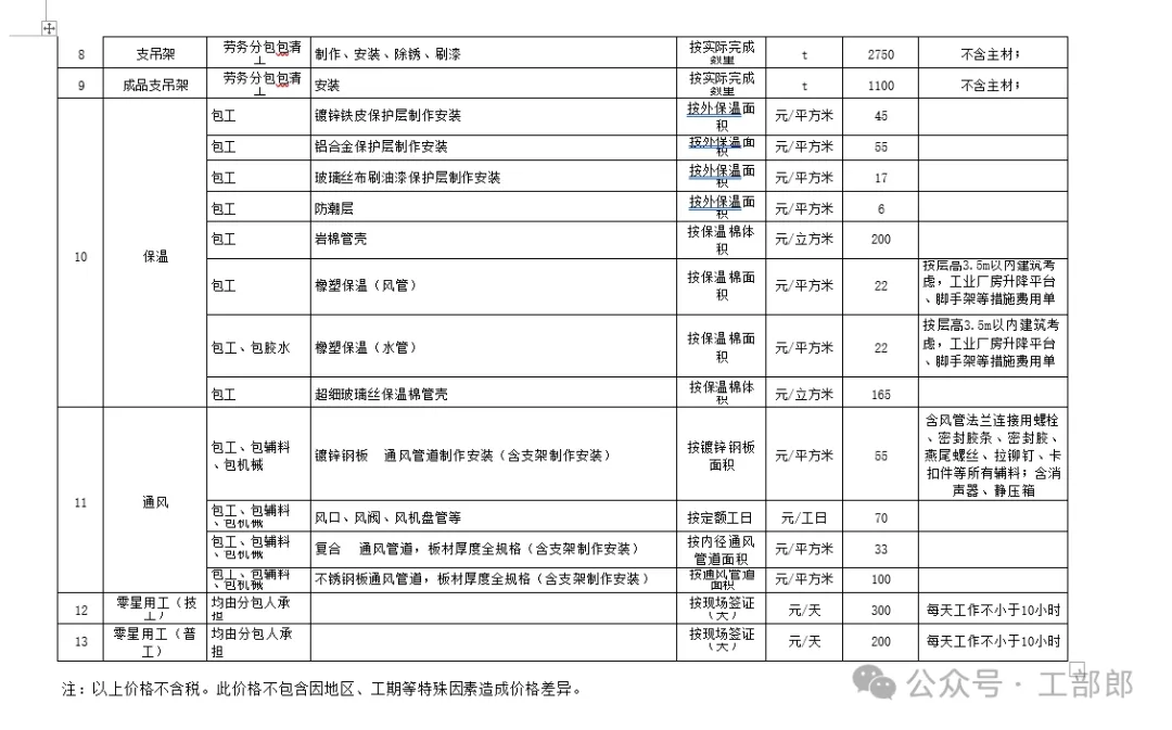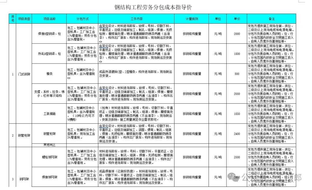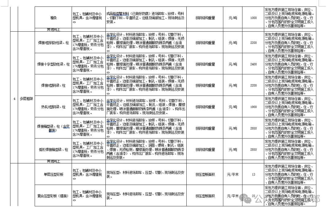 成本指导价中的分包价格均为不含税价格,非实体类消耗为价税合计价格。