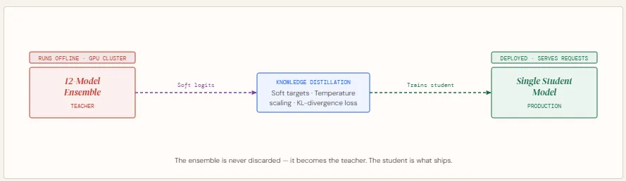 为提升预测精度,AI系统常使用集成模型组合多个神经网络,但其高延迟和高资源消耗使其难以部署。知识蒸馏技术通过让小型‘学生’模型学习大型‘教师’集成模型的输出分布,成功将多个模型的智能浓缩至一个轻量级模型中,显著降低推理成本。