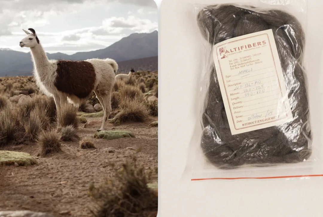 Bolivia这家llama工厂也有自己的实力,开发了新的llama去毛技术。llama大羊驼毛纤维质量在Guanaco,Vicuna,Alpaca等南美洲羊驼大家族中属于最粗糙的,很少有品牌用llama,这也是我第一次遇到。llama要比Alpaca的毛还要粗糙不均,它的被毛是两层:外层Guard Hair粗硬、刺痒,主要起保护作用,内层Undercoat则要细软