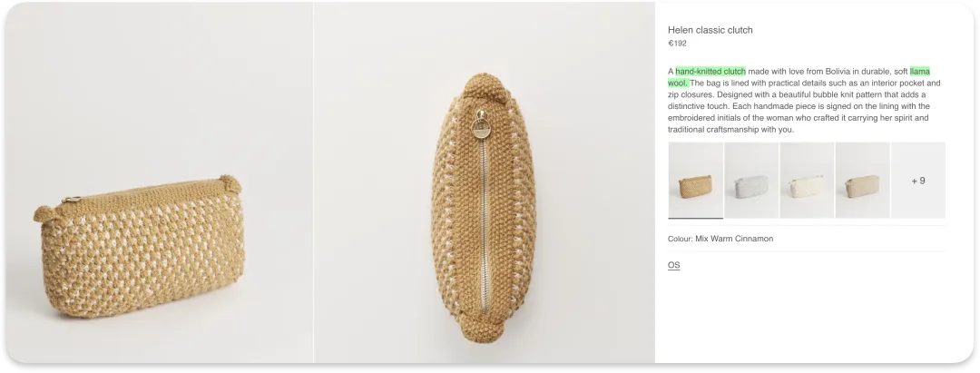 Aiayu品牌也得以诞生,第一个产品就是玻利维亚妇女用100% llama wool手工针织的Helen clutch