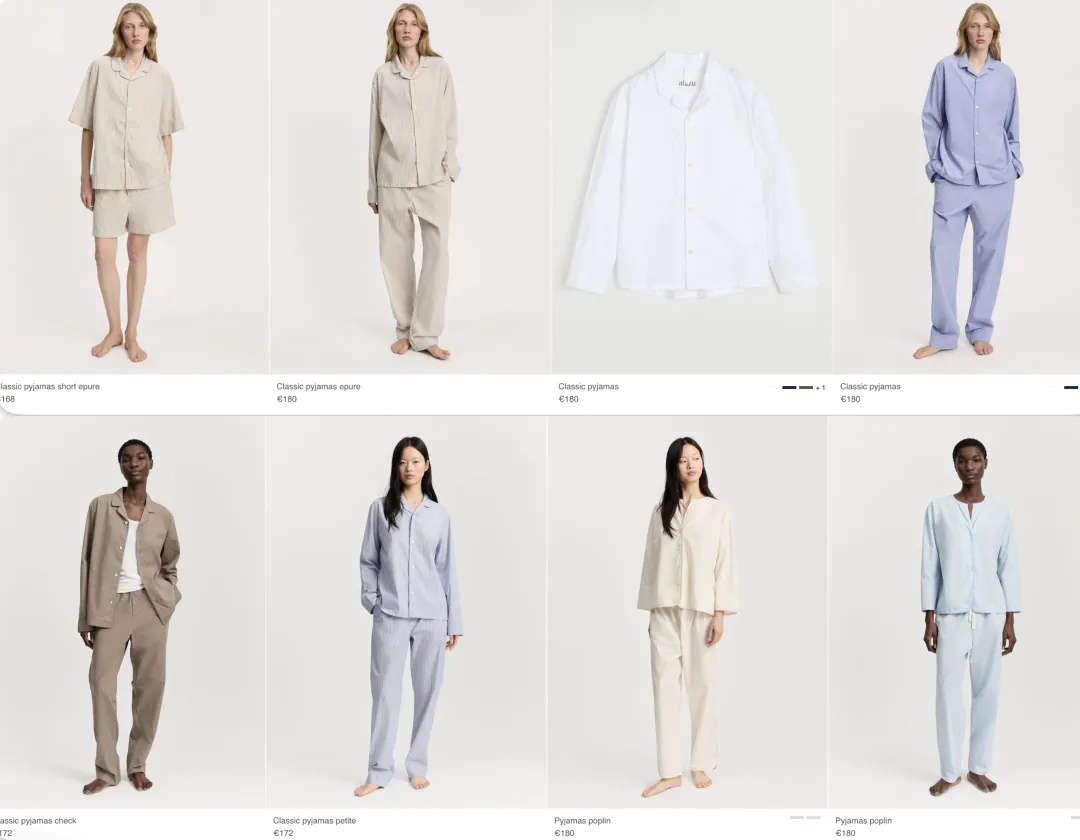 针对印度有机棉于是有了品牌的第二核心品类: 各种有机棉睡衣套装。这是继Derek Rose之后,我关注到的又一个深耕睡衣品类的品牌