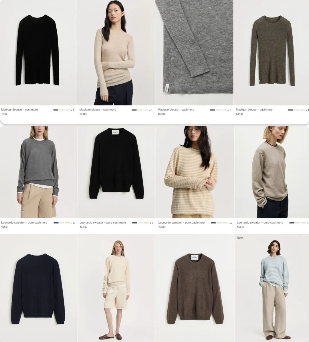 两个核心畅销款羊绒衫是修身打底的Madigan坑条罗纹羊绒衫,跟40%亚麻混纺;另一个是Leonardo圆领休闲套头衫