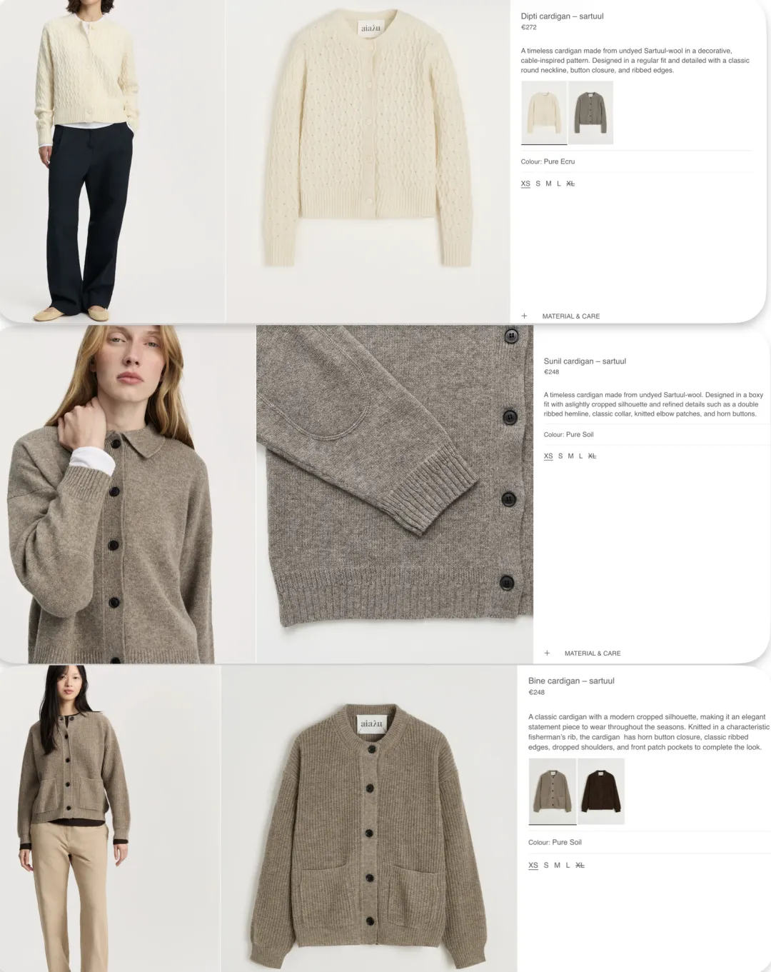 因为Aiayu专门对使用的动植物面料有分类,有"materials-first"的品牌理念,于是接着梳理面料就整理一些代表品类