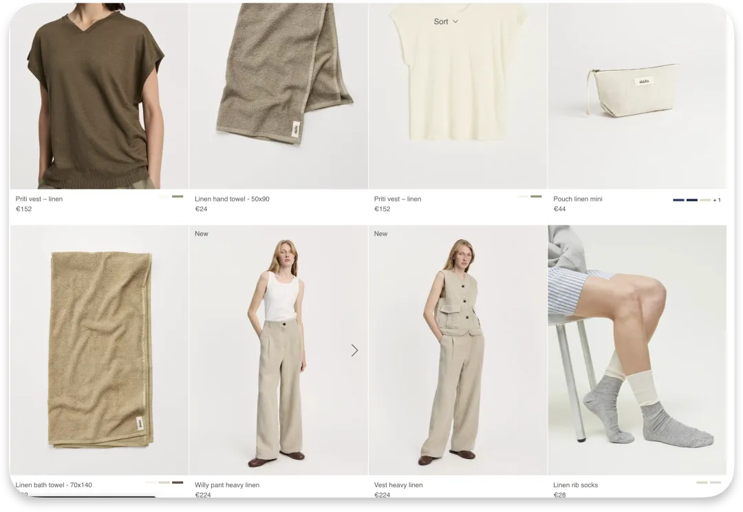 最后的第五个面料是亚麻,亚麻跟有机棉用于Aiayu各种类目,从毛巾、床单、上衣、裤装、外套都有,不单独说